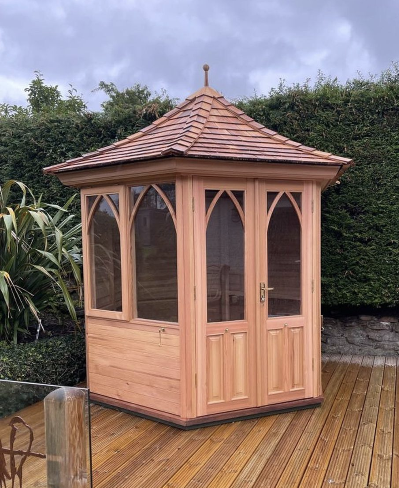 “Thank you so much for our summerhouse. It is perfect and exactly what I wanted. As expected your craftsmanship is second to none and details like the chamfered edges on the windows are just amazing. I can envisage many happy afternoons in there reading and just smelling the cedar. We expected the summerhouse to be excellent but you’ve exceeded our expectations, thank you. It is fabulous.”